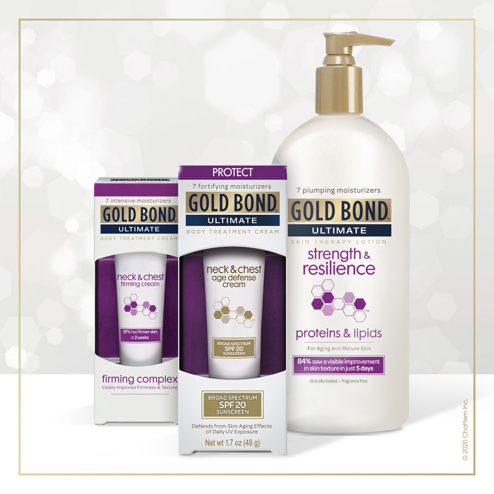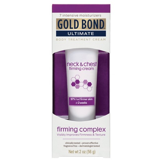 Gold bond ultimate neck & chest firming cream claims that it's the perfect solution for those that have noticed loss of elasticity around the neck and chest area due to age. Neck & chest firming cream: My experience was not as it is comfortable in and very moisturizing. Gold bond ultimate firming neck & chest cream, 2 oz (2 pack).